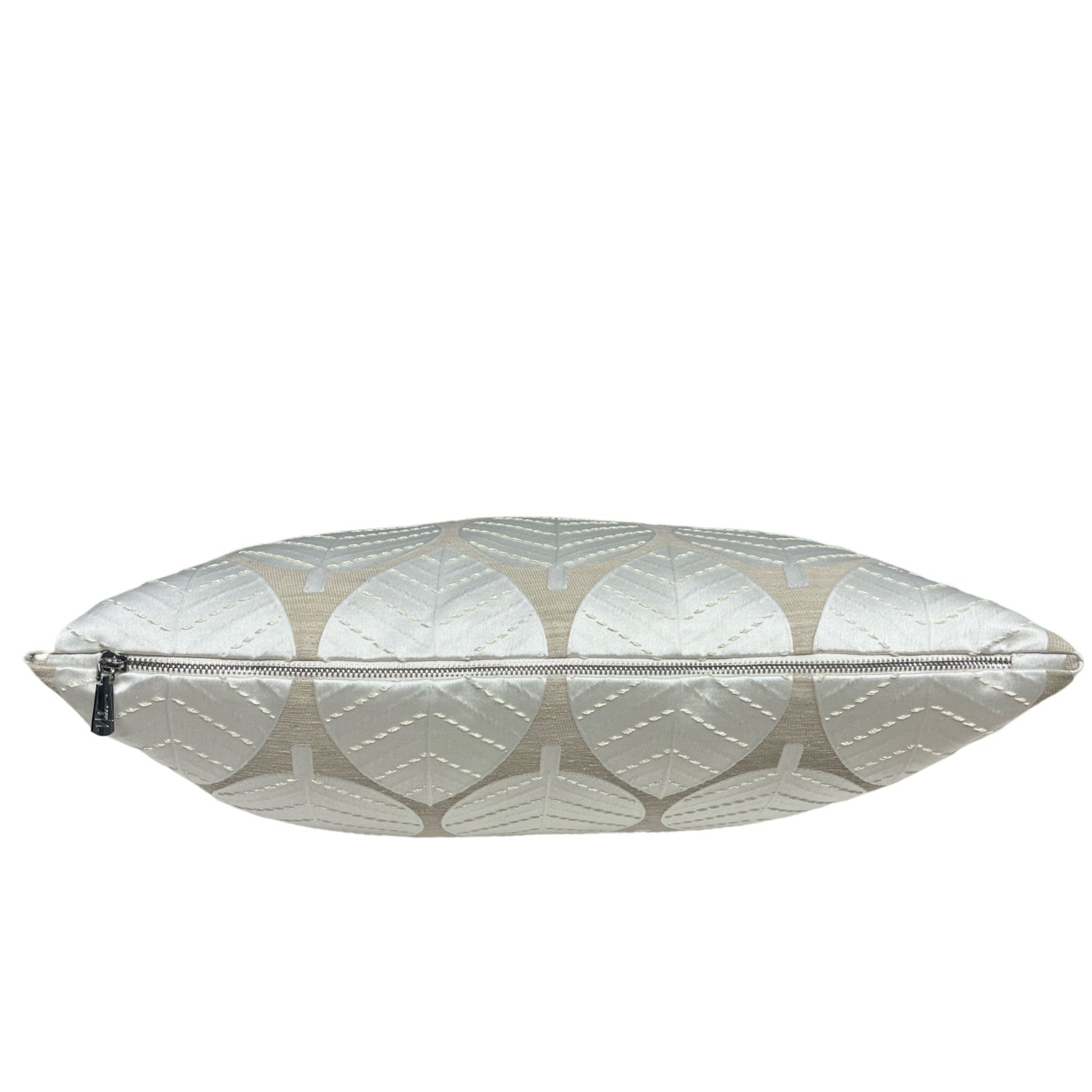 Quality Designer Fabric. Beautiful large satin leaves with stitching details on natural background. This pillow cover, with its rich textures and clean elegance is sure to elevate your chosen space.
