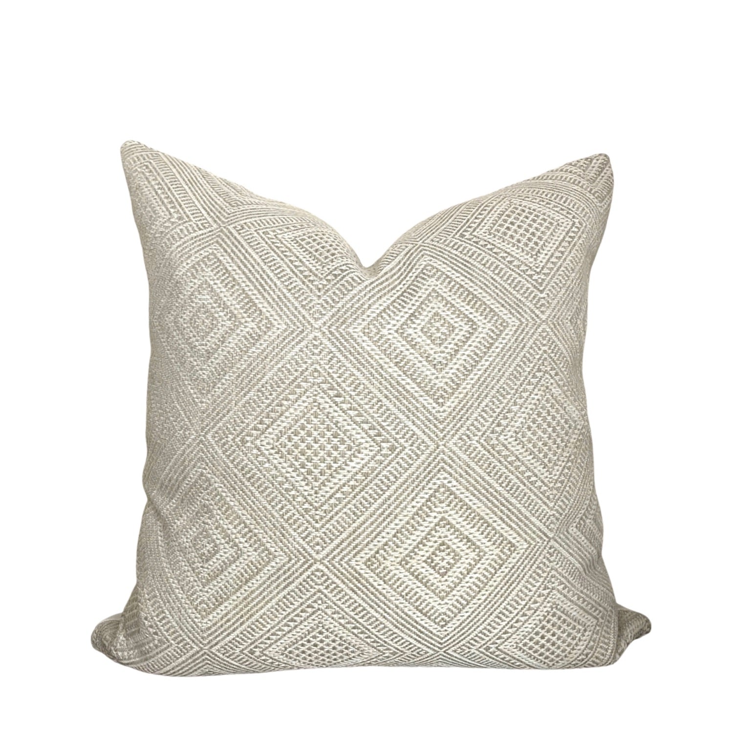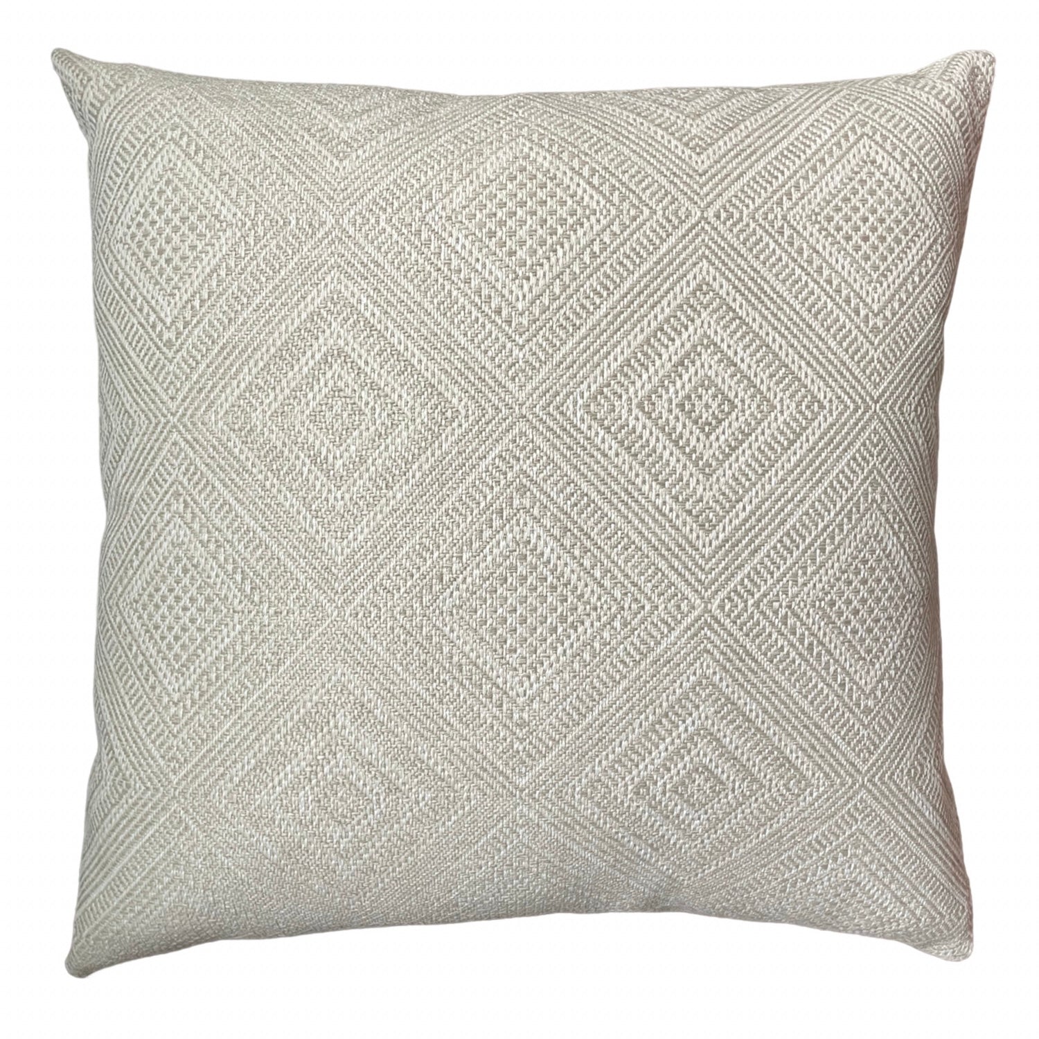 Designer Fabric by Scalamandre. Beautiful weaves with Linen and white yarns in diamond design. Soft to touch for indoor use. Water and Stain repellent for Outdoor use.
