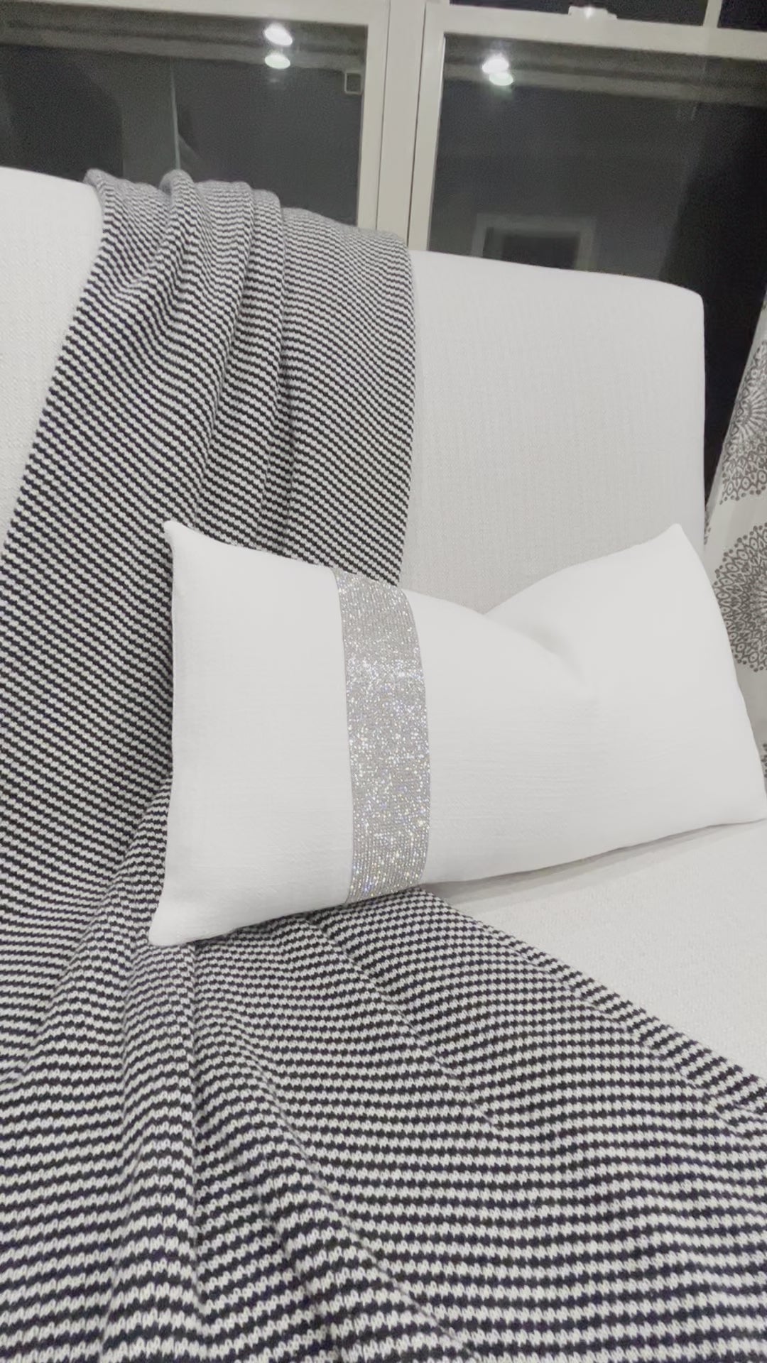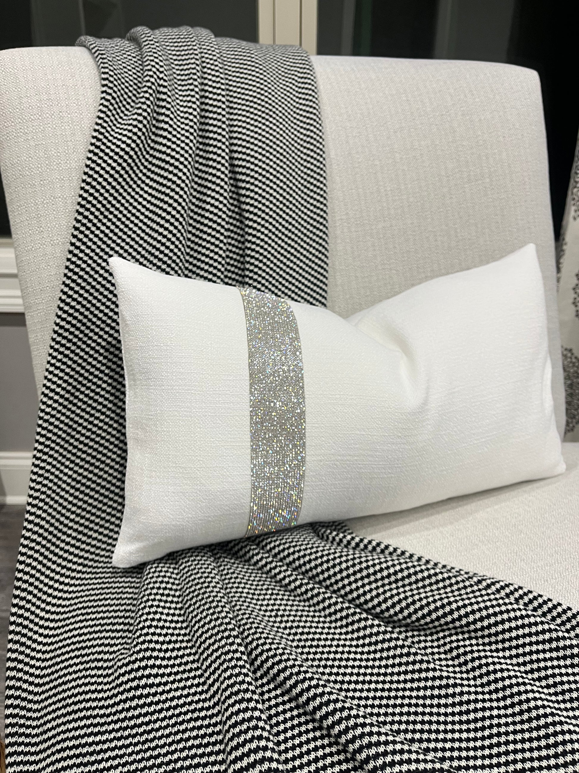 White Rhinestone Lumbar Pillow Cover